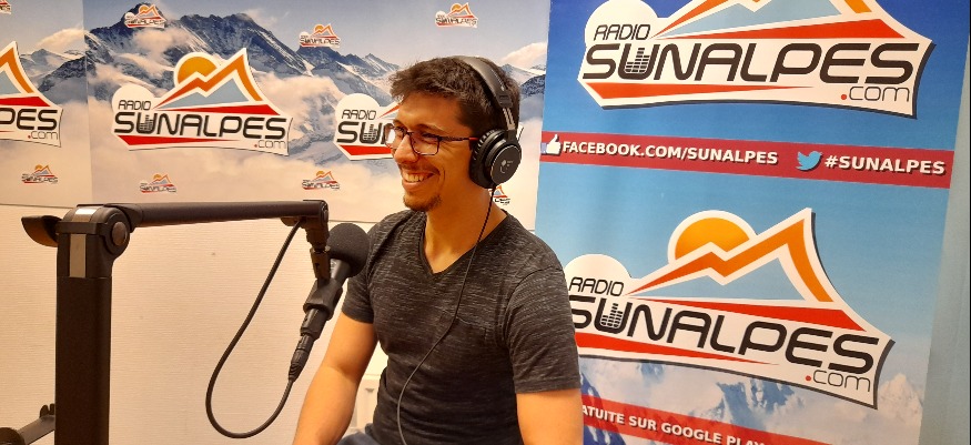 Photo : Geoffrey Leroy, dans les studios de SunAlpes Radio.