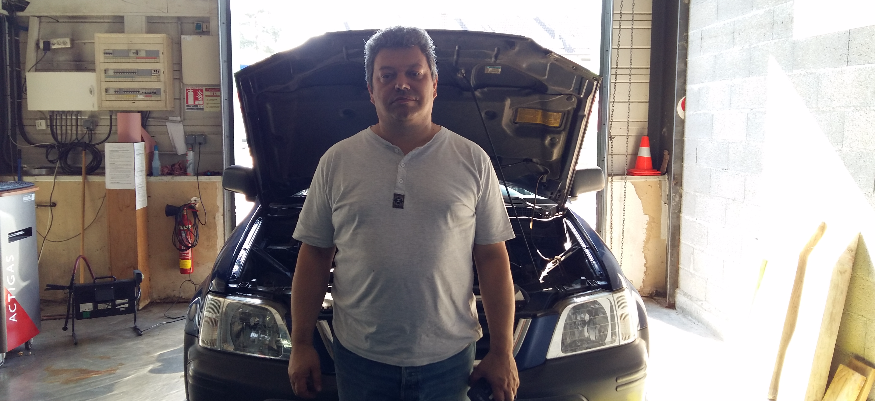 Photo : Didier Verdon, en plein contrôle technique sur une voiture d'un client...