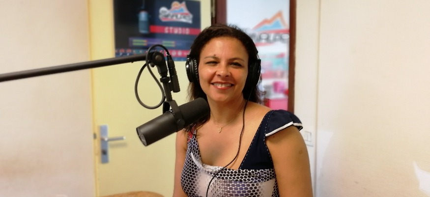 Photo : Françoise Pfiffelmann-Silvan dans les studios de Sunalpes Radio.