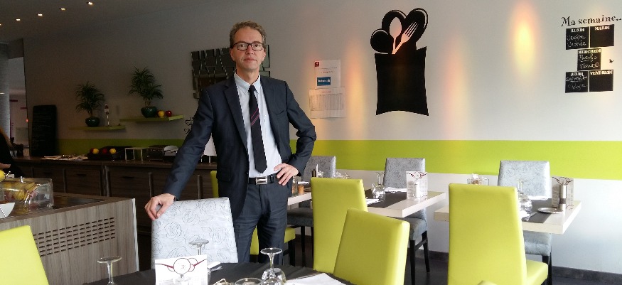 Photo : Didier Perillat, directeur de l'Hôtel dans la salle du Restaurant de l'Hôtel "Le 76"