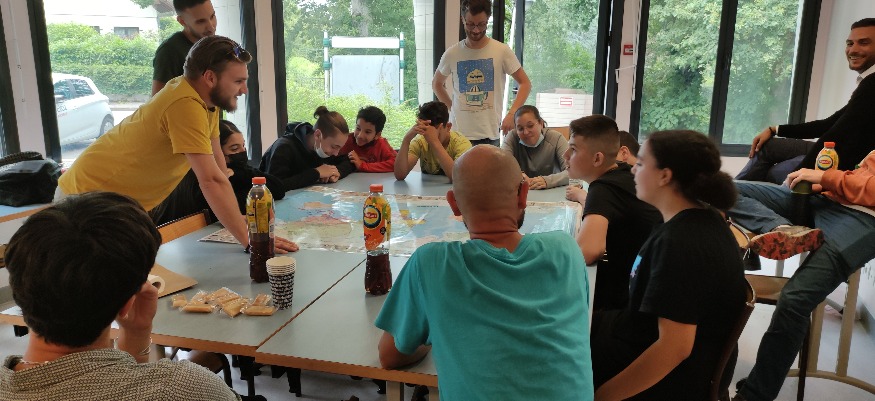 Photo : Les jeunes autour d'une table discutent de leurs futurs voyages.Reportage : Adrien Chatre