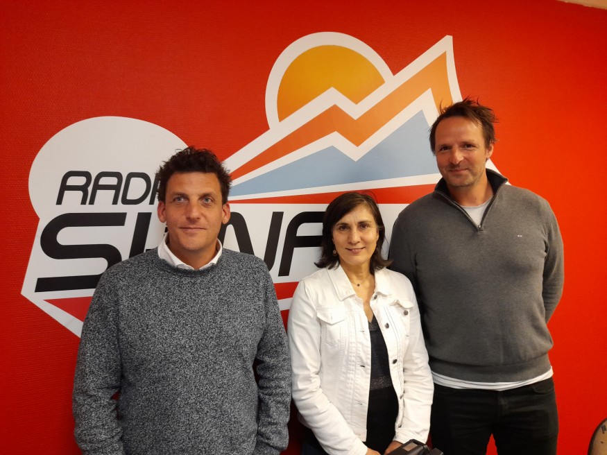 Photo : Corinne, dans les studios de SunAlpes Radio, avec Yann Bonnefille (à gauche) et Thomas Arthus (à droite).